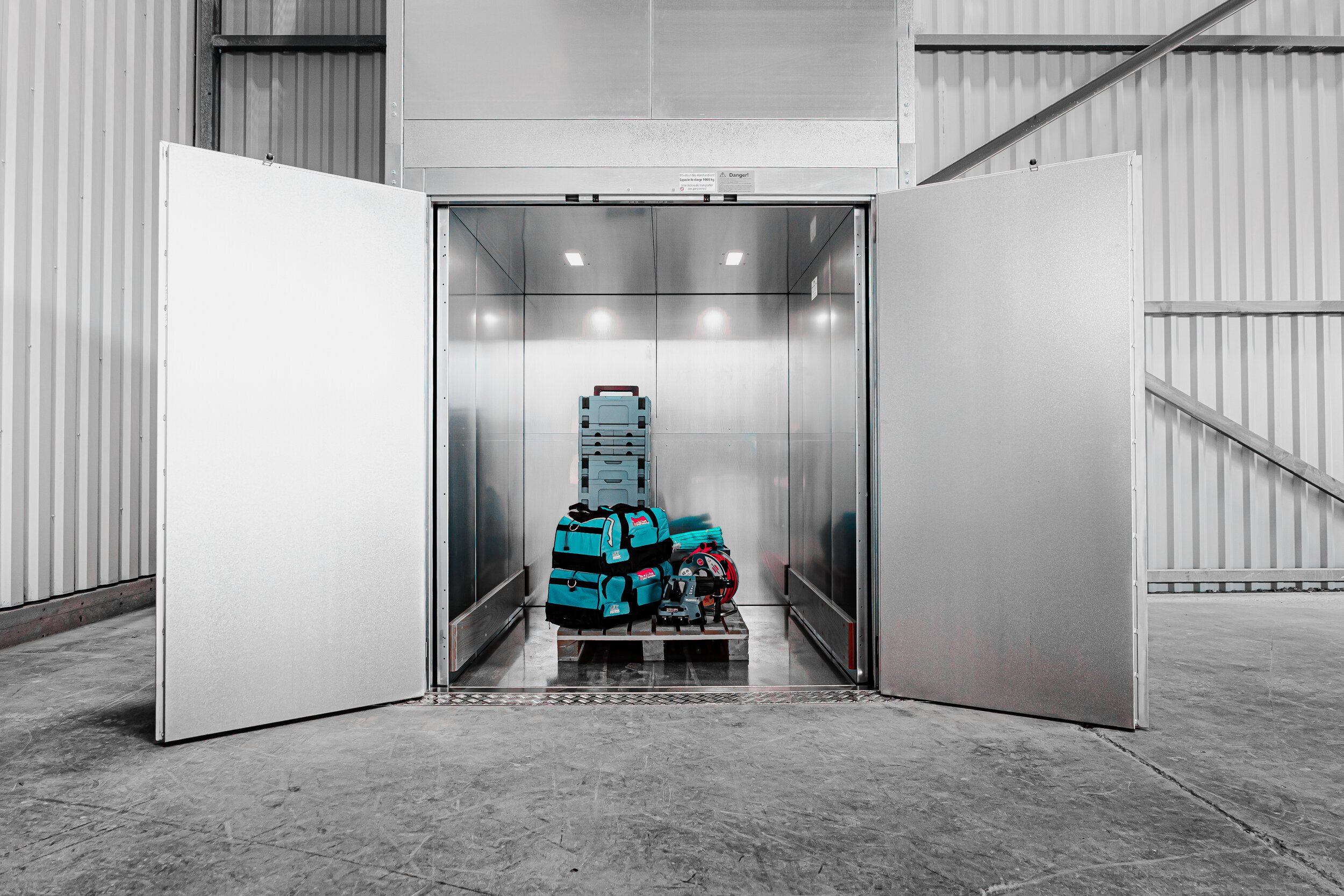 Industrial lifts from Mein Aufzug comply with all safety standards and regulations – including state-of-the-art control and emergency systems. Safety devices, automatic door systems and reliable braking mechanisms ensure safe operation for people and materials.